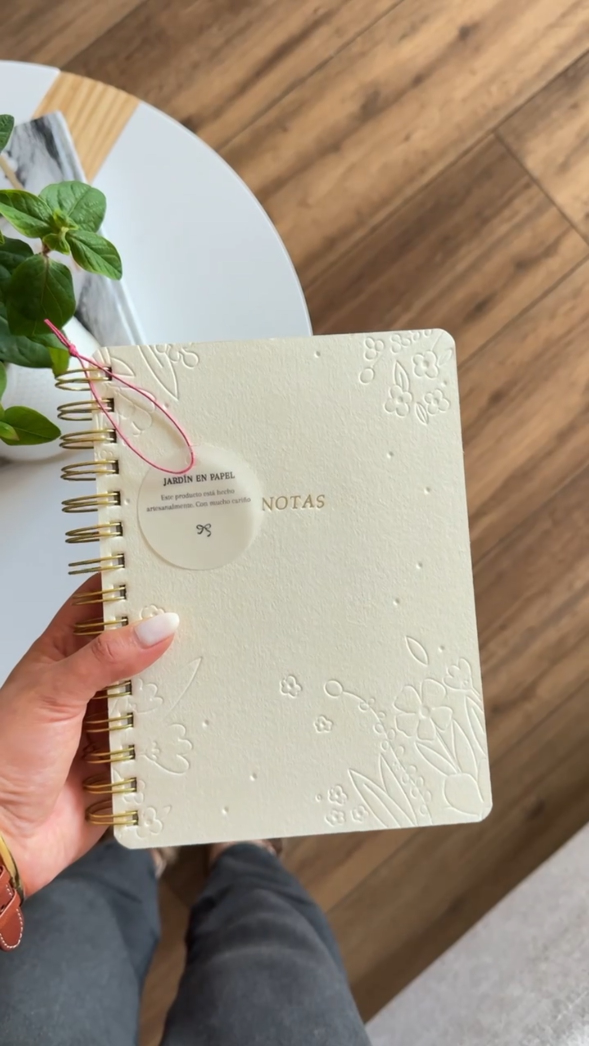 Descubre la elegancia y distinción de nuestra Libreta Jardín en Papel, confeccionada con papelería fina y embellecida con un diseño en bajo relieve. Al abrir tu libreta, sentirás la suave caricia de su textura y el bajo relieve, un recordatorio de la belleza que reside en los detalles más discretos y refinados.